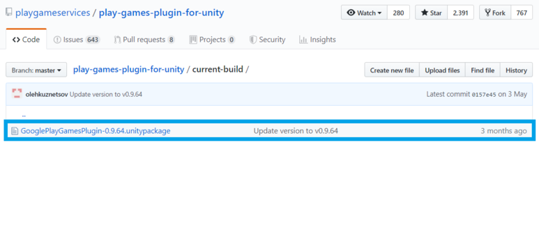 current-build 폴더의 가장 최신 플러그인 유니티 패키지를 다운받습니다.