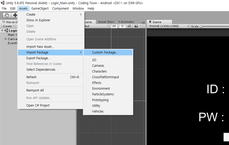 다운 완료 후 유니티에서 패키지를 임포트합니다