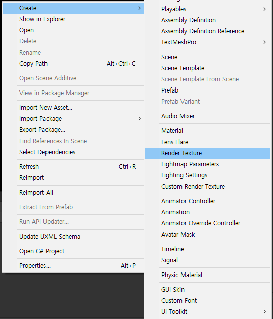 3. 비디오 렌더링을 위한 Render Texture 생성 후 Size(가로 x 세로 해상도) 지정