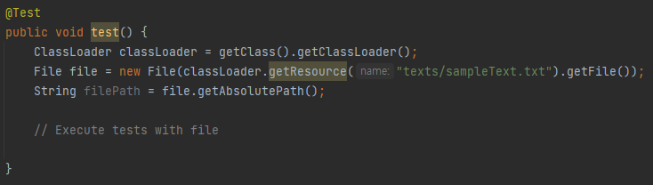 테스트 코드에서 ClassLoader.getResouce로 해당 파일을 가져와서 쓴다.