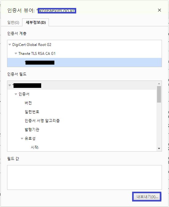 일단 연결하려는 사이트의 인증서를 확인했다.