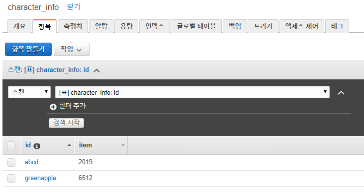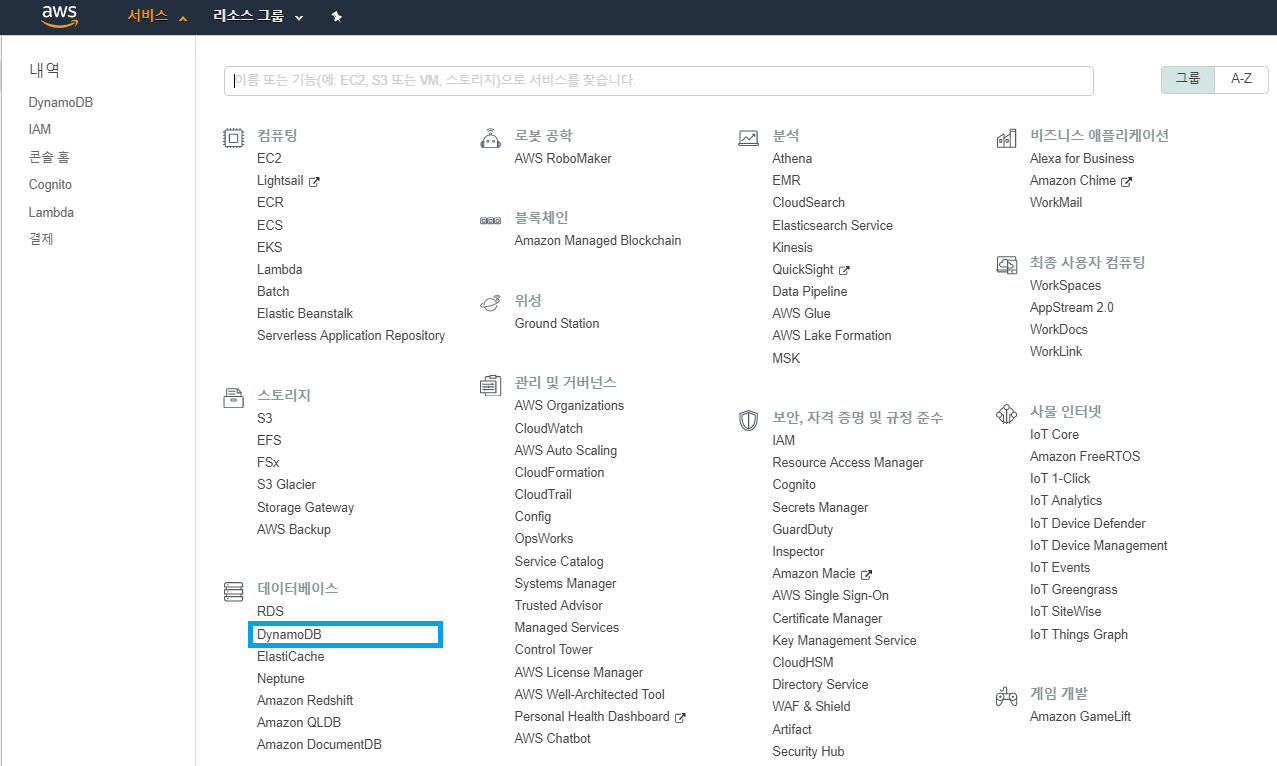 AWS 서비스 탭에서 DynamoDB콘솔 창에 접속한다.